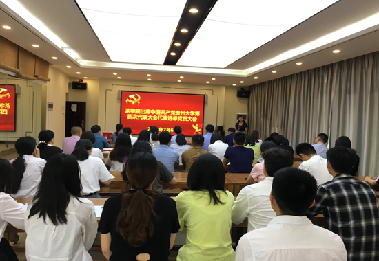 贵大新闻网讯(茶学院供稿)7月6日上午,茶学院出席中国共产党贵州大学第四次代表大会代表选举党员大会在崇德楼502多功能厅顺利召开,大会选举产生茶学院出席中国共产党贵州大学第四次代表大会的代表。本次代表选举党员大会由茶学院党委书记罗聃宁主持。茶学院党政领导、组织员、在校师生党员同志40余人参加本次会议。