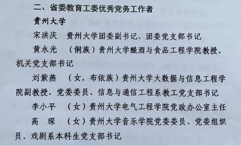 近日,省委教育工委发布《关于表彰省属本科高校厅属职业院校优秀共产党员、优秀党务工作者和先进基层党组织的决定》,我校12人获“省委教育工委优秀共产党员”表彰,5人获“省委教育工委优秀党务工作者”表彰,7个基层党组织获“省委教育工委先进基层党组织”表彰。