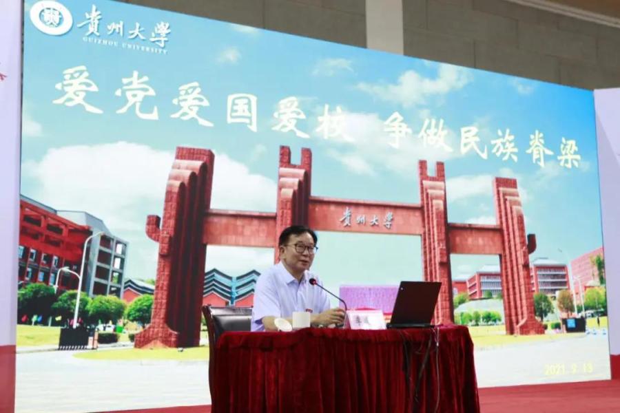 李建军指出,今年是建党100周年,贵大师生要深入学习领会、认真贯彻落实习近平总书记“七一”重要讲话精神,深刻领悟中国共产党带领中国人民取得的举世瞩目的成就。他结合贵大的历史、人物、故事,生动形象地讲述贵大119年的变化,讲述中国共产党100年来的伟大成就,深入诠释了中国共产党的伟大建党精神。