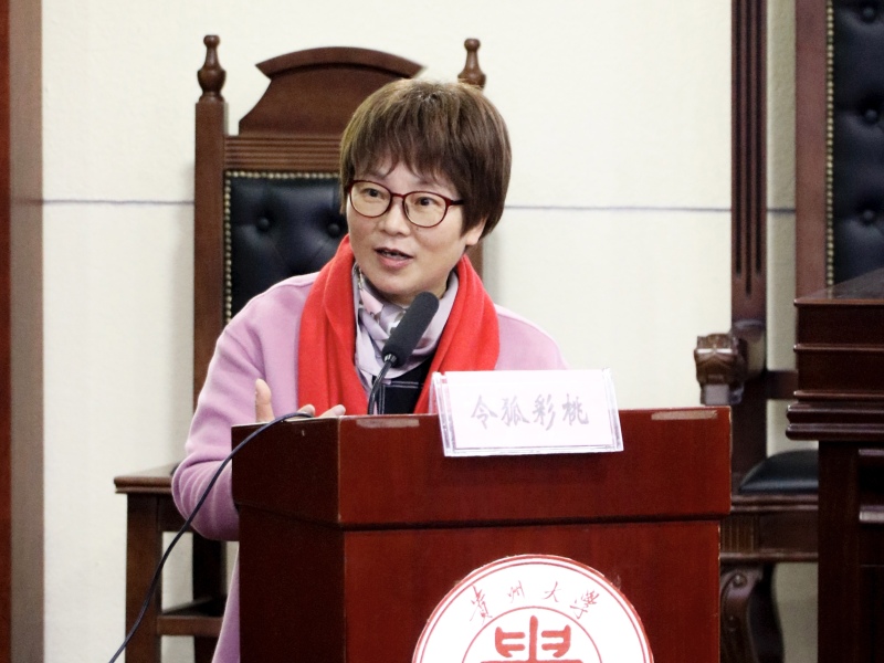 11月11日晚,东校区慎思楼模拟法庭内红旗飘扬、歌声嘹亮。“学党史、唱红歌——感悟歌声里的中国力量”法学院党史学习教育暨青年学子成长成才思政课举行。校党委副书记令狐彩桃出席活动,法学院相关负责人、青年教师代表、学生辅导员、本科生党支部全体党员、新一批党员发展对象、学生代表等百余人参加活动。