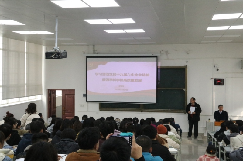 宋宝安以“学习贯彻党的十九届六中全会精神 做强学科和贵大的高质量发展”为题,深入阐释高质量发展的内涵及“创新、协调、绿色、开放、共享”五大发展理念,并围绕“学习贯彻党的十九届六中全会精神” “百廿年贵州大学发展历程与成就” “学科师生应如何做强贵大高质量发展”三个方面进行宣讲。