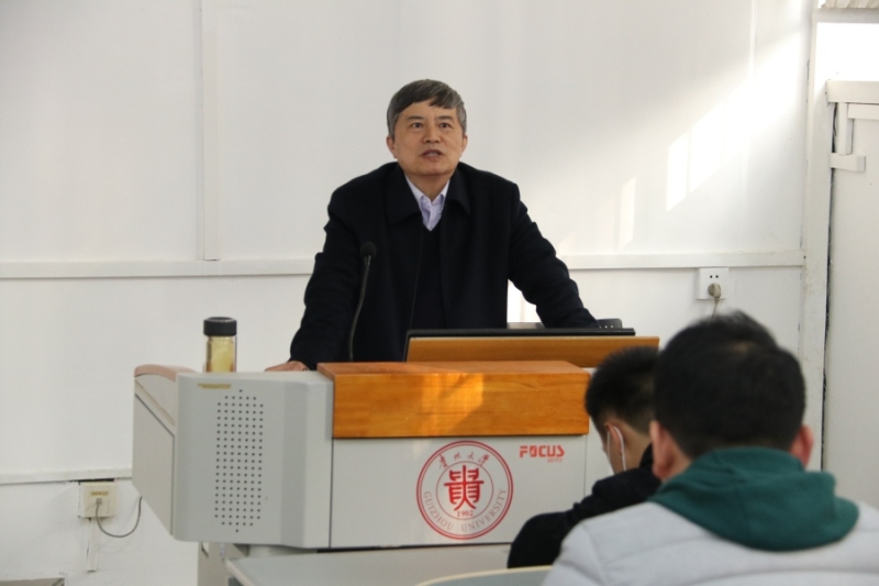 宋宝安讲述了百廿年贵州大学发展历程与成就,与在场师生重温贵大百余年来的发展历史。在学科师生应如何做强贵大高质量发展方面,宋宝安提出要围绕“四新”主攻“四化”,全面提升学校整体实力和综合竞争力,希望广大师生干事创业要有精气神,教书育人要有精气神,科学研究要有精气神,生活营造要有精气神,为做强贵大高质量发展塑造良好精神风貌。