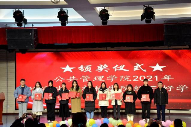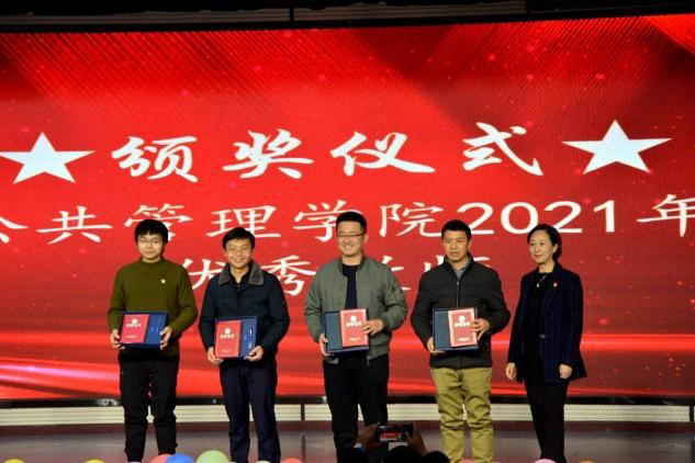 12月14日中午,公共管理学院“颂建党百年,扬公管之风”主题教育活动暨2021年表彰大会在西校区崇实楼110会议室召开。院党委书记庄勇、院长马红梅、党委副书记邹年娟、副院长卢正涛、王志凌、杨达出席会议,获奖教师和学生代表参加会议。