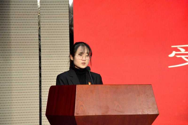 获奖学生代表张狄发言。她表达了对老师的感谢,并代表学生承诺今后将再接再厉、再创佳绩,勇担责任,用行动说话。