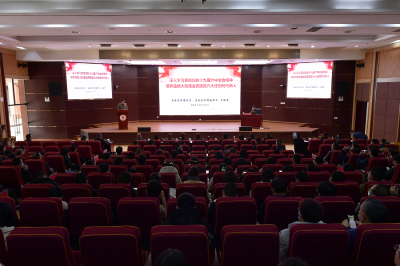 12月15日,深入学习贯彻党的十九届六中全会和省委十二届十次全会精神宣讲报告会在我校举行。省委宣讲团成员、省委组织部副部长王瑞军以《深入学习贯彻党的十九届六中全会精神 培养造就大批堪当民族复兴大任的时代新人》为题作宣讲报告。校党委书记李建军主持报告会。