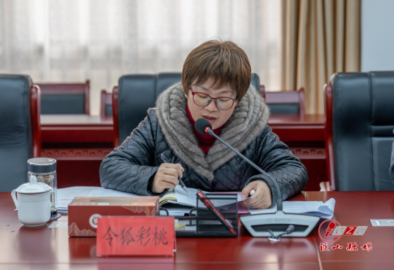 令狐彩桃讲话。她表示,希望各基层党委坚持严实标准提升党组织建设质量,强化党组织整体功能,不断激发党建工作的活力,推动党建工作形成新成效,持续推进党建引领,以建强基层党组织促进学科建设,提高教学质量,落实立德树人根本任务,引领学院工作再上新台阶。