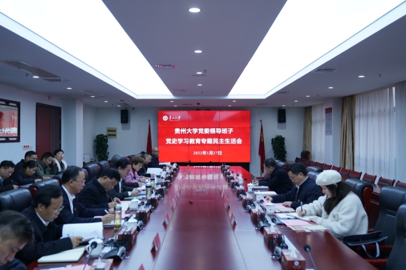 1月27日,贵州大学党委领导班子党史学习教育专题民主生活会在西校区贤正楼1号楼311会议室召开。省委宣传部副部长、省广播电视局党组书记、局长、省委党史学习教育领导小组成员兼办公室主任耿杰,省纪委省监委派驻纪检监察组副厅长级专职纪检监察员(派驻第二纪检监察组)、省委党史学习教育领导小组办公室指导联络组副组长徐健,省委党史学习教育第十三巡回指导组组员申香林、宋璨羽一行到会指导。