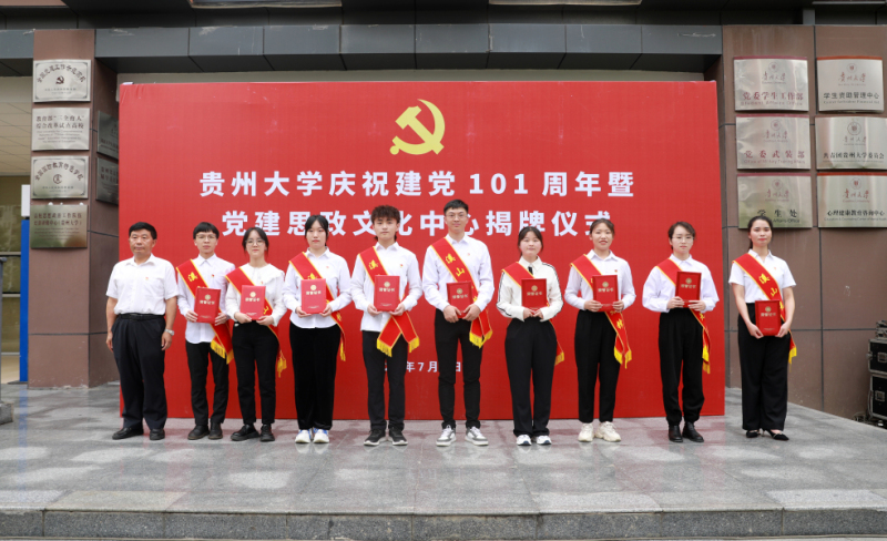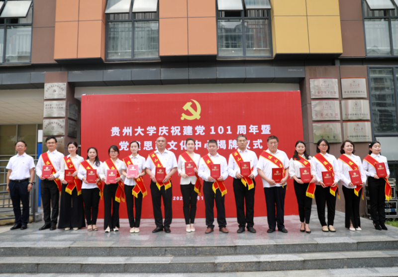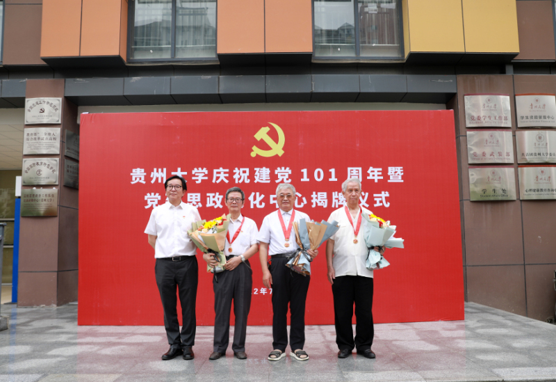 7月1日上午,在庄严肃穆的国歌声中,贵州大学庆祝建党101周年暨党建思政文化中心揭牌仪式在西校区雅文楼党建思政文化中心举行。活动现场回顾党的光辉历程,回首学校红色历史,颁发“光荣在党50年”纪念章,并表彰我校“成才先锋”“育人先锋”“服务先锋”。