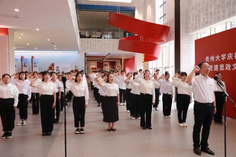 活动中,李建军、校党委副书记骆长江,校纪委书记唐本文及党员、干部代表为贵州大学党建思政文化中心揭牌,新党员代表、“溪山先锋”代表分别在活动上发言,同时,新党员举行了入党宣誓仪式,并参观党建思政文化中心。