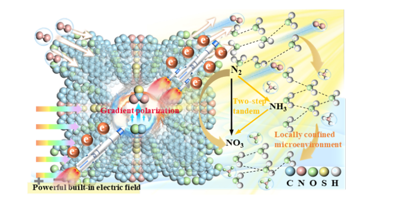 在此次研究中,陈鹏团队创新提出“空间梯度极化”设计策略。该设计如同为电子搭建“三维高速公路”,既打通快速传输通道,又形成强大内置电场,大幅提升光生电荷分离与利用效率。团队同时与中南林业科技大学和湖南大学等高校深度合作,成功证实了“梯度极化”结构的有效性。