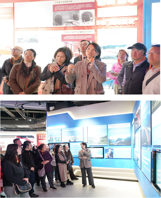 张胜林聚焦花江峡谷大桥等世界级工程,详细介绍了贵州桥梁建设发展史、世界级大桥建设成就与技术创新,以及坝陵河大桥、平塘大桥、花江峡谷大桥等典型工程展区及桥梁建设中的技术突破,分享了新质生产力、数字化、绿色低碳理念在桥梁建造中的实践应用,让大家深入了解贵州交通发展与乡村振兴、高质量发展深度融合的丰硕成果,深刻体会科技创新对贵州交通发展的核心赋能作用。随后,大家登临坝陵河大桥,近距离感受超级工程的磅礴气势。